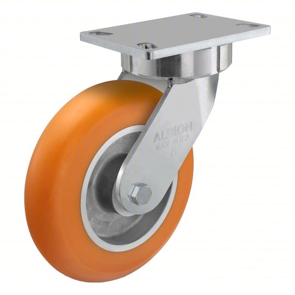 Swivel, Plate Caster, Swivel Lock Type No Lock Included, Wheel Dia. 8 in, Wheel Width 2 in, Wheel/Tread Material Polyurethane, Wheel Core Material Aluminum, Non-Marking Yes, Number of Wheels 1, Caster Brake Type No Brake, Tread Shape Donut