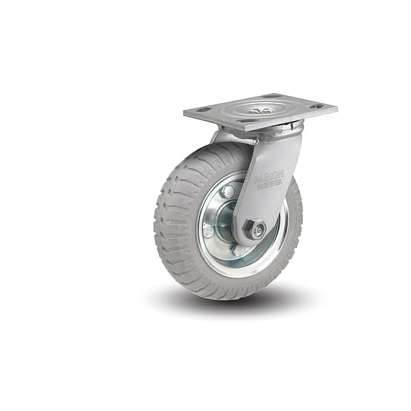 Swivel, Plate Caster, Load Rating 440 lb, Swivel Lock Type No Lock Included, Wheel Dia. 10 in, Wheel Width 3 1/2 in, Wheel/Tread Material Rubber, Wheel Core Material Steel, Non-Marking Yes, Number of Wheels 1, Caster Brake Type No Brake, Tread Shape Standard