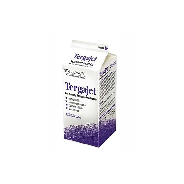 Tergajet is a scientifically formulated nonionic, low foaming, phosphate-free powder detergent. Removes soil, grit, and blood from glass, metal plastic, rubber and hard surface materials. Ideal for use in labware washers, manual and ultrasonic cleaning.