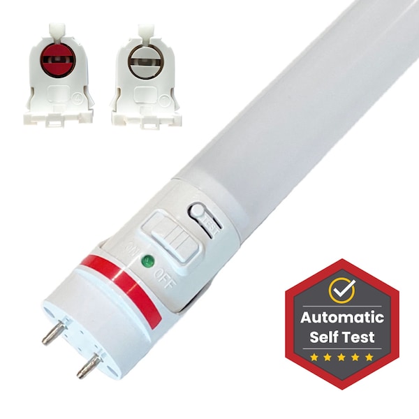 Aleddras G4 PRO Emergency LED T8 tube 3CCT Version sets another industry standard as the first UL924-certified self-testing emergency LED tube. The PRO Series features a patented locking lampholder that secures the tube in place, meeting UL924 safety requirements by preventing removal without a tool. The lamp operates as an energy-efficient T8 during normal operation and can be turned on/off via a wall switch. During power outage, it will last over 90 minutes on battery. More importantly, the lamp will automatically self-test for 30 seconds monthly and for 90 minutes annually, thus meeting the emergency lighting audit requirements with no labor cost. This saves a facility management team a tremendous amount of labor from manually testing every single lamp of this kind in its facilities. Should any malfunction be detected during self-testing, such as insufficient battery capacity, the warning indicator on the lamp will flash and alert the team. With its labor saving, the lamp gives the end user the best return on investment and the best emergency lighting option.