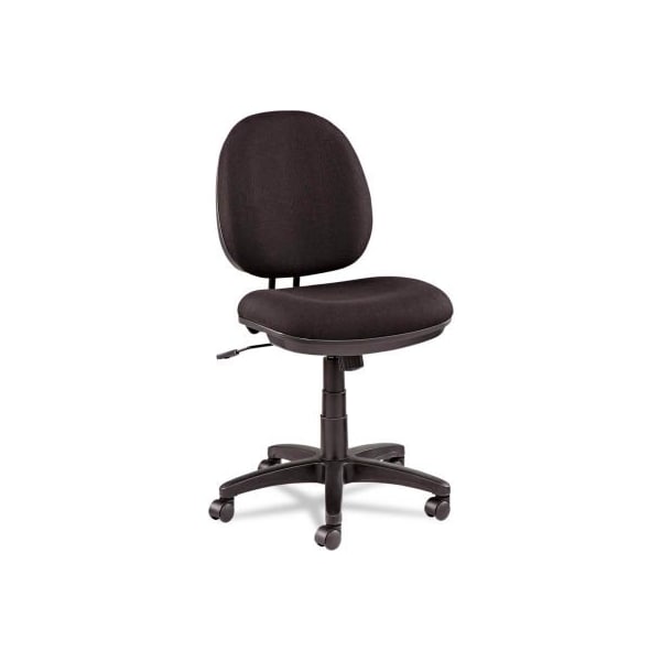 Alera alein4811 interval swivel/tilt task chair,100% acrylic w/tone-on-tone pattern,black molded plastic shell resists impact. Waterfall seat edge helps relieve pressure points on the underside of legs. Five-star base with casters for easy mobility. Optional arms sold separately. Recommended applications: general office & task; seat/back color: black fabric; arms included: no. compliance standards: greenguard indoor air quality certified; meets or exceeds ansi/bifma standards. note: optional arms sold and shipped separately. Casters supplied with this chair are not suitable for all floor types.. for use with: alera optional height-adjustable polyurethane t-arms; alera optional fixed height t-arms. this product arrives to most customers in 2-3 business days.