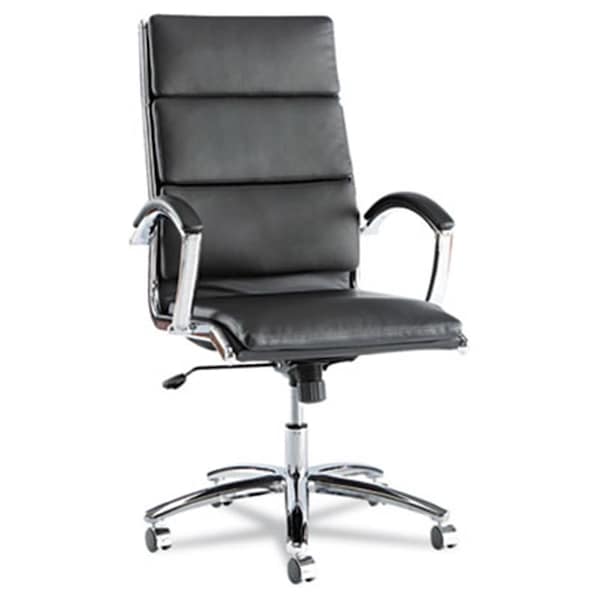 Neratoli High-Back Swivel-Tilt Chair- Black Soft-Touch Leather- Chrome Frame