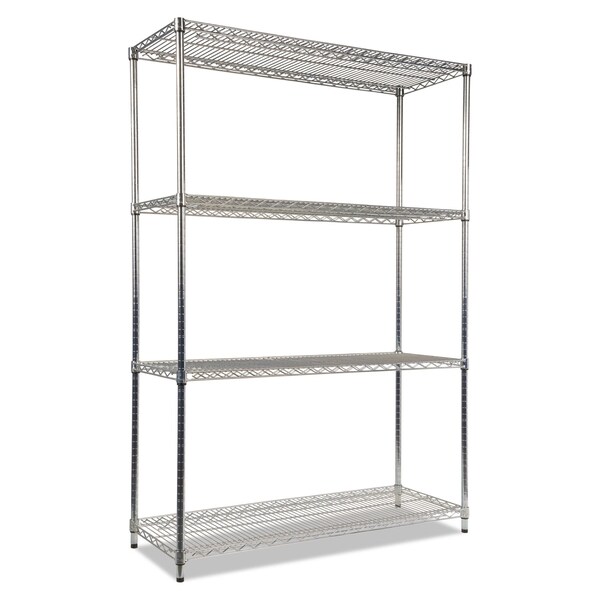 Wire Shelving Unit, 18"D x 48"W x 72"H, 4 Shelves, Silver, Depth: 18" (Discontinued)