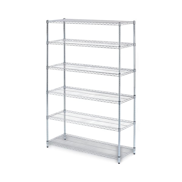 Wire Shelving Unit, 18"D x 48"W x 72"H, 6 Shelves, Silver, Depth: 18" (Discontinued)