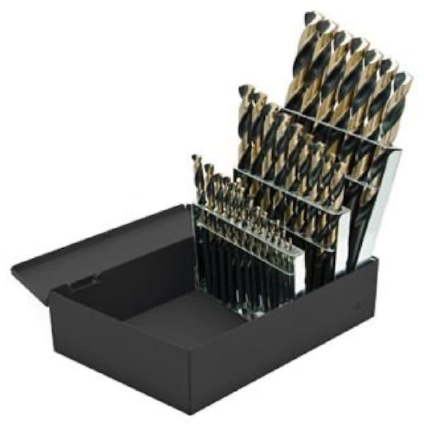 ALFA Tools BB74191 60pc Set Blitz Bit Jobber Length Blitz Bit Jobber Length SWG Number Drill Set 60 piece Drill Set in Steel index, Wire Gage Sizes #1in to #60in, M7 High Speed Steel, Black & Gold Finish, 135 degree Split Point, Straight Shank, Heavy Duty, Right Hand Spiral,