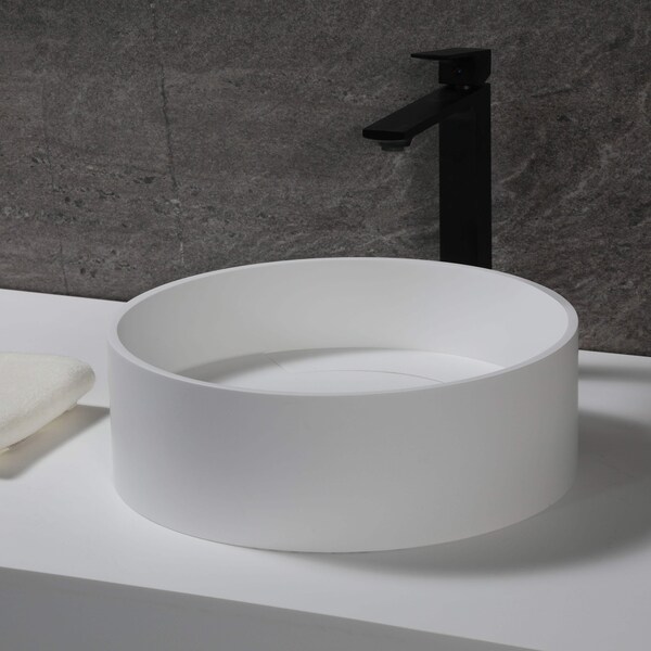 15" Round White Matte Solid Surface Resin Sink