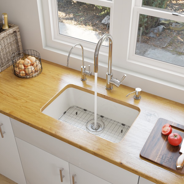 24" White Sgl Bowl Fireclay Undermount Kitchen Sink