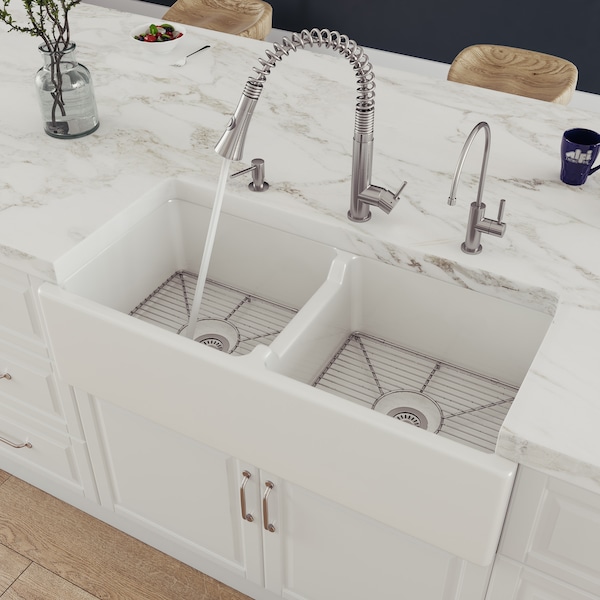 39" White Smooth Apron Thick Wall Fireclay Dbl Bowl Farm Sink