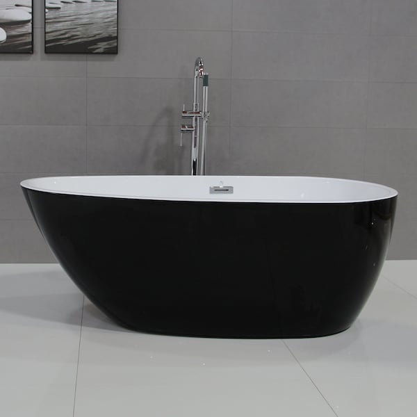 59" Black & White Oval Acrylic Free Standing Soaking Bathtub