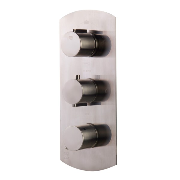 Modern round knobs and a sleek appearance make this easy-to-install single panel shower mixer a perfect choice. Equipped with a 4-way shower diverter, this brass thermostatic shower valve mixer by ALFI brand lets you switch from your handheld showerhead or above showerhead, to tub filler or body jets any time you wish!