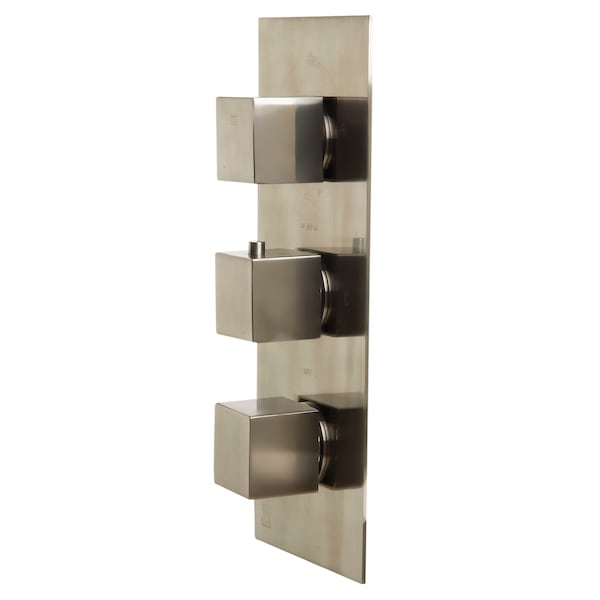 Brshd Nckl Concealed 4-Way Thermostatic Valve Shower Mixer W/Sqr Knobs