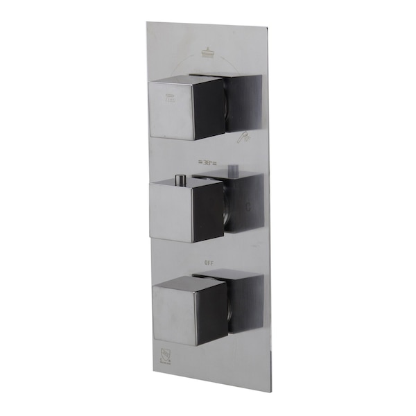 Brushed Nckl Concealed 3-Way Thermostatic Valve Shower Mixer Sqr Knobs