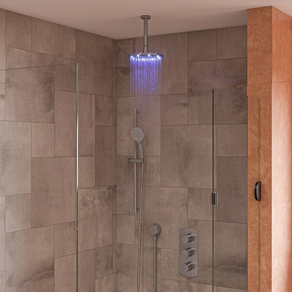 Brushed Nickel 8" Round Multi Color LED Rain Shower Head