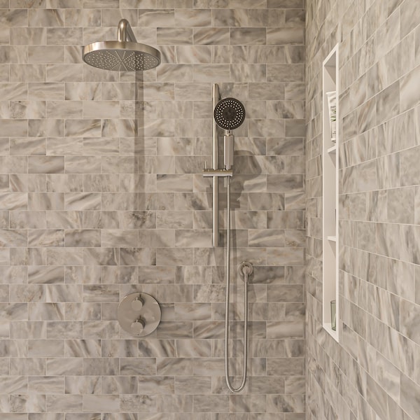 Brushed Nickel Round Style 2 Way Thermostatic Shower Set