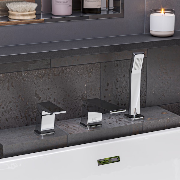 Polished Chrome Deck Mount 3 Hole Tub Filler & Shower Head
