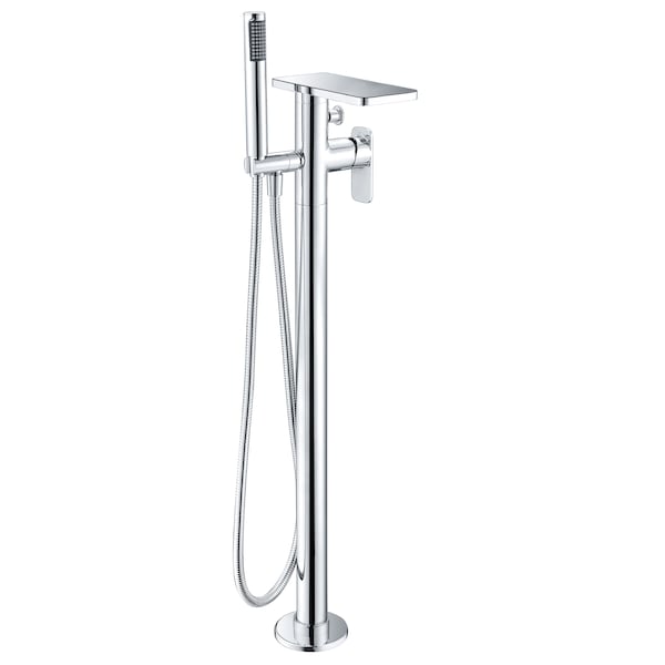 Polished Chrome Free Standing Floor Mount Bath Tub Filler