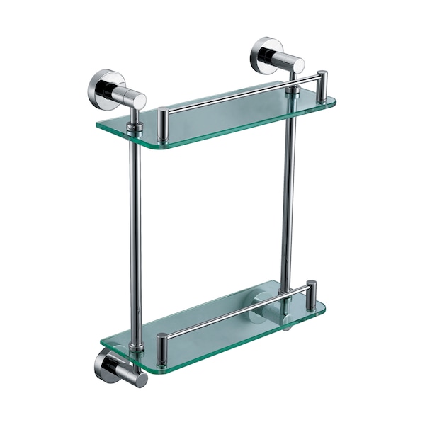 Polished Chrome Wall Mount Dbl Glass Shower Shelf Bathroom Accessory