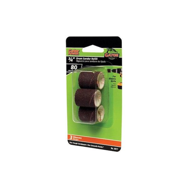 Gator Grit, 3 Pack, 3/4in x 1in, Medium Drum, Sander Resin Cloth Abrasive Sleeve, Fits 3/4in Drum Sanders.