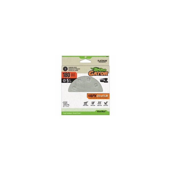 APX Ultrafilm Sanding Discs, Hook & Loop, 180 Grit, 5 In., 15-Pk.