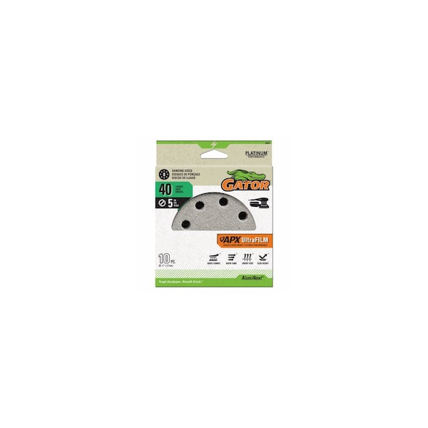 APX Ultrafilm Sanding Discs, Hook & Loop, 40 Grit, 5 In., 10-Pk.