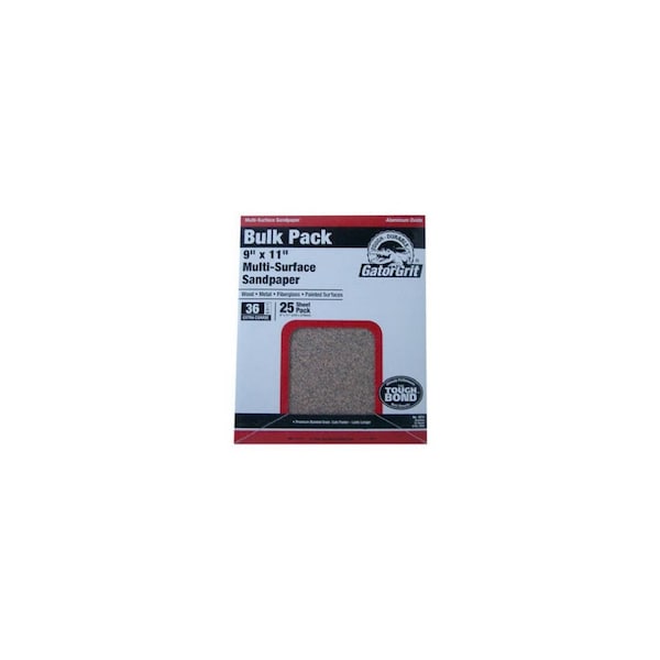 Gator Grit, 25 Count, 9in x 11in, Extra Coarse 36 Grit, General Purpose Sandpaper, Bulk Sheets, Aluminum Oxide, D Weight Paper.
