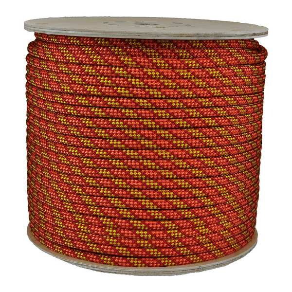 Rigging and Climbing Rope, Rope Type Static, Breaking Strength 8,200 lbf, Working Load Limit 820 lb, Rope Construction Kernmantle, Diameter 1/2 in, Overall Length 600 ft, Core Material Polyester, Product Type Rigging and Climbing Rope, Lifting Capability For Lifting, Rope Format Spool, Rope Strand Count 32, Core Strand Count 8, Minimum Operating Temperature Not Applicable, Maximum Operating Temperature Not Applicable, Weight 10 lb, Color Orange/Red/Yellow