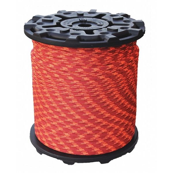 Rope Sub-Category Arborist, Rope Diameter 7/16 in, Rope Material Polyester, Rope Length 600 ft, Working Load Limit 630 lb, Rope Construction Braid, Tensile Strength 6,300 lb, Red/Orange Tracer, Package Type Spool