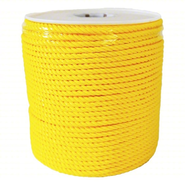 General Purpose Utility Rope, Rope Type Dynamic, Breaking Strength 1,130 lbf, Working Load Limit 1,130 lb, Rope Construction Twisted, Diameter 1/4 in, Overall Length 600 ft, Core Material Polypropylene, Cover Material Polypropylene, Elongation @ 10 Percent Minimum Breaking Strength Not Applicable, Product Type General Purpose Utility Rope, Rope Format Spool, Rope Strand Count 3, End Type Plain, Weight 7.2 lb, Color Yellow, Resistance Properties Abrasion-Resistant, Standards ISO 9001:2015