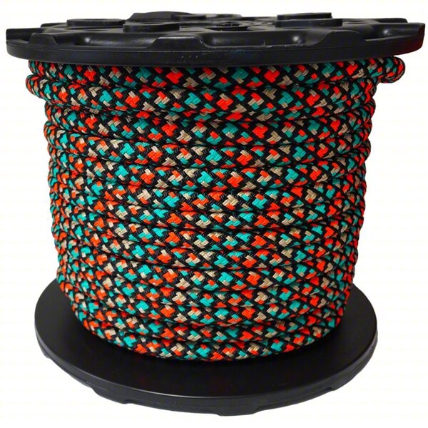 Rigging and Climbing Rope, Rope Type Dynamic, Breaking Strength 23,000 lbf, Working Load Limit 4,600 lb, Rope Construction Double Braid, Diameter 3/4 in, Overall Length 600 ft, Core Material Nylon, Cover Material Polyester, Elongation @ 10 Percent Minimum Breaking Strength Not Applicable, Product Type Rigging and Climbing Rope, Rope Format Spool, Core Type Braided Core, End Type Plain, Spliceability Spliceable, Weight 85 lb, Coating Type Urethane, Color Black/Green/Orange