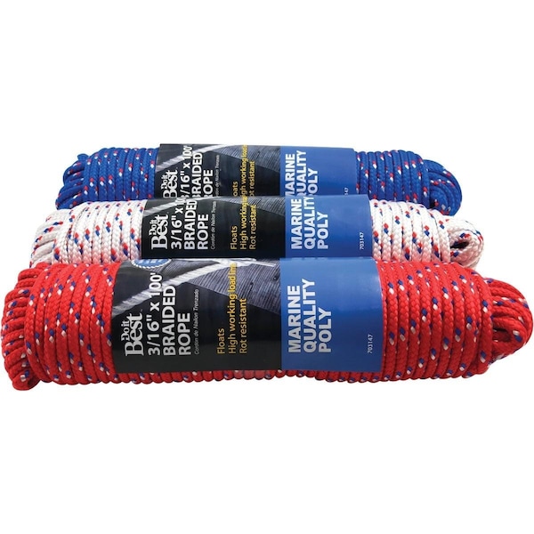 3/16 In. x 100 Ft. Assorted Colors Diamond Braided Polypropylene Packaged Rope