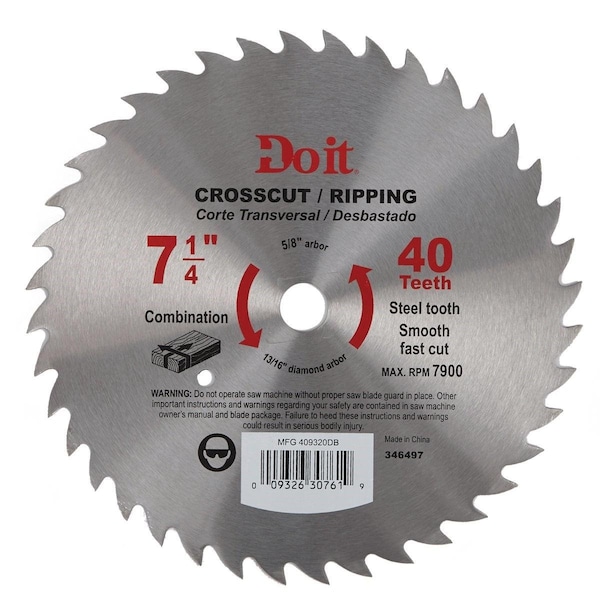 7-1/4 In. 40-Tooth Cutoff/Rip Circular Saw Blade, Bulk