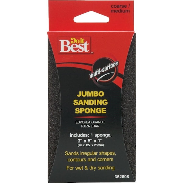 Jumbo All-Purpose 3 In. x 5 In. x 1 In. 36/80 Grit Medium/Coarse Sanding Sponge
