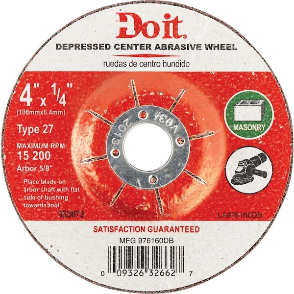 Type 27 4 In. x 1/4 In. x 5/8 In. Masonry Cut-Off Wheel