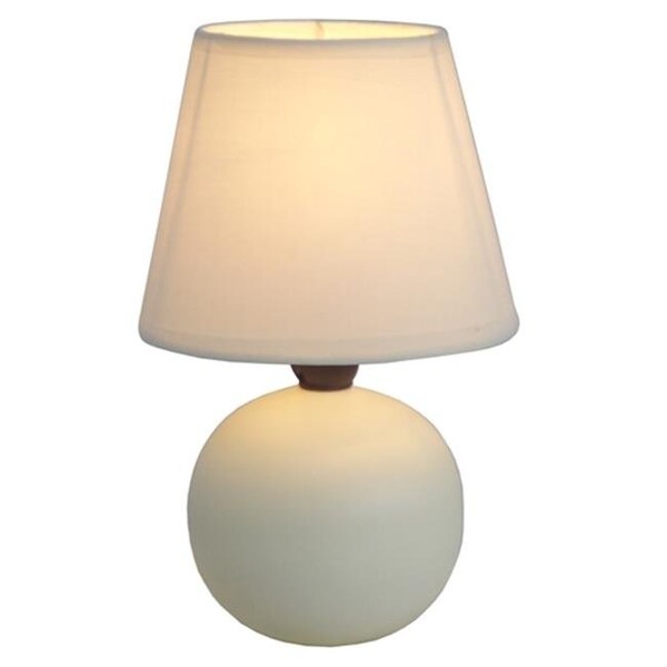A lovely inexpensive and practical table lamp to meet your basic fashion lighting needs. This mini globe lamp features a ceramic base and matching fabric shade. Perfect for living room bedroom office kids room or college dorm!Mini globe shaped ceramic base Matching fabric shade Perfect for living room bedroom office kids room or college dorm Uses 1 x 40W type B E12 Candelabra Base bulb (not included) Height: 8.78" Shade diameter: 5.55"