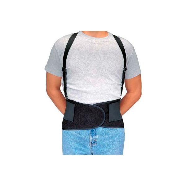Allegro 7176-04 economy back support belt, x-large this economical support is designed with an eight-inch elastic back panel, positive hook and loop material front panels and 3 inch wide elastic v-shaped side pulls. Includes wide detachable elastic suspenders. Available in black, in size x-large.