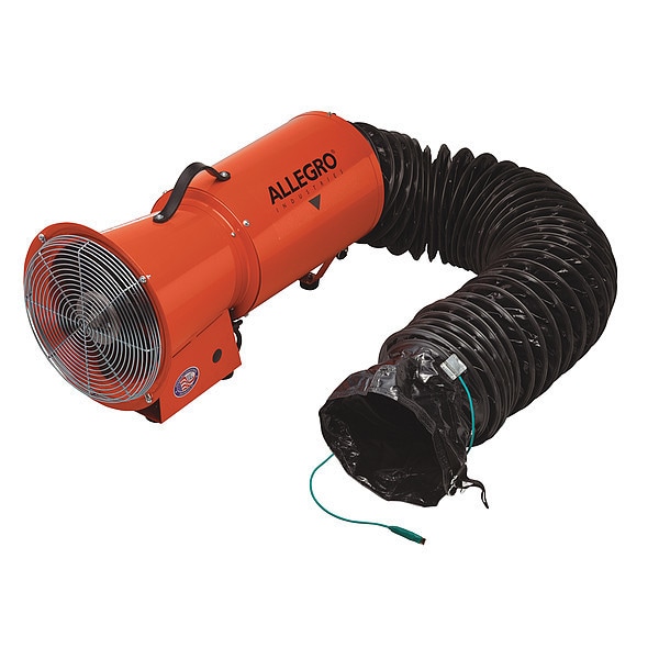 Confined Space Fan, Blower/Fan Speed 3,250 RPM, Includes 15 ft Duct, 25 ft Duct, Duct Storage Bag, Current (A) 3.3 A, Duct Diameter 8 in, Horsepower 1/3 hp, Maximum Flow in Free Air 890 cfm, Voltage 115 V AC, Color Orange, For Use With 8 in Duct, Material Epoxy, Neoprene, Polyamide, Polyester, Rubber, Steel, Vinyl, Height 15 in, Length 3 ft, Width 13 5/8 in, Standards ASTM 227, CSA Certified, Type Axial
