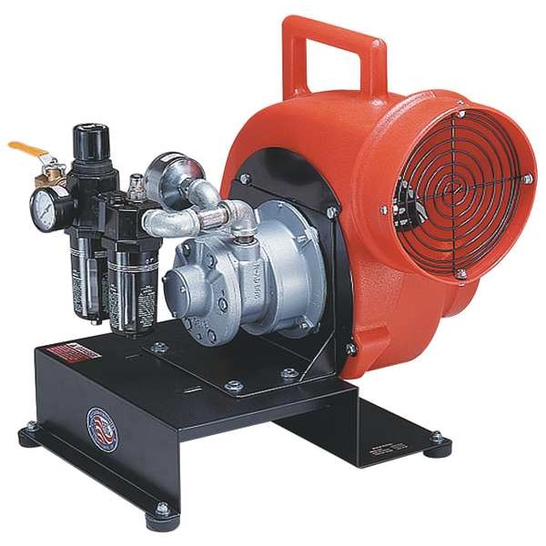 Confined Space Centrifugal Blower, Air Inlet Connection Size 8 in, Air Inlet Gender Not Applicable, Air Inlet Type Not Applicable, Includes Filter, Lubricator, Maximum Inlet Pressure 60 psi, Duct Diameter 8 in, Maximum Flow in Free Air 1,700 cfm, Maximum Air Consumption 1,700 cfm, Blower/Fan Speed Not Applicable, Horsepower 1/4 hp, Color Orange, Material Polyethylene, Height 21 in, Length 22 in, Width 22 in, Power Source Air Driven, Standards ASTM 227