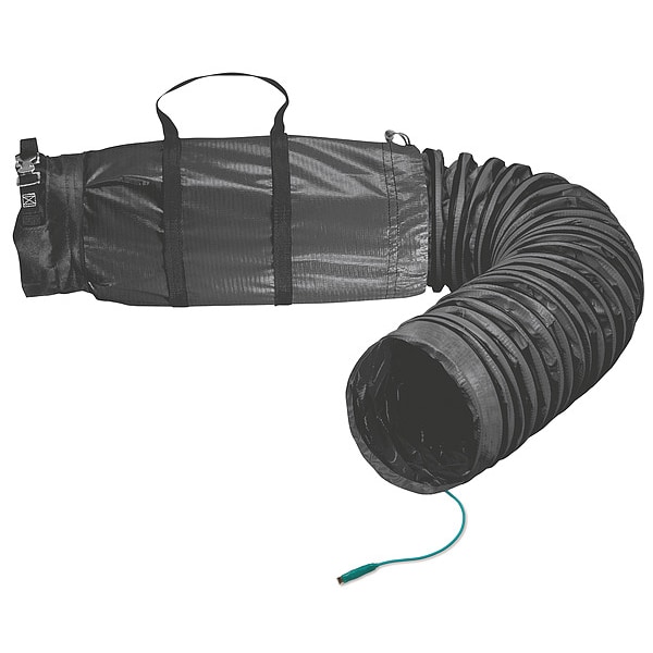 Statically Conductive Duct, Conductive Material Construction Yes, Color Black, Diameter 12 in, Material Neoprene, Polyester, Standards ASTM 227, UL-94-VO, For Use With Blowers, Includes Built-in Carry Handle, Drawstring Closure, Length 15 ft