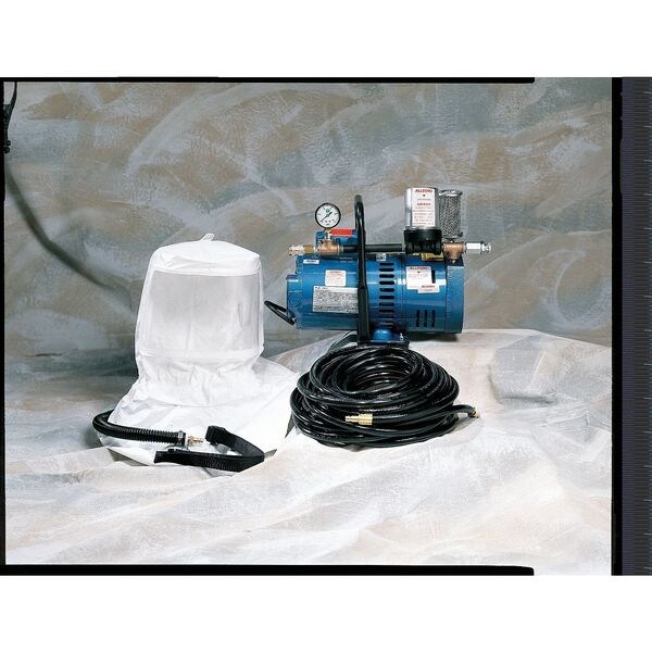 Supplied Air Pump Package, Includes 3/4 hp Ambient Air Pump, 50 ft Hose, Breathing Tube, Disposable Lightweight Loose Fitting Dupont Tyvek Hood, Includes Headgear Yes, 9220, Full Hood, Headgear Size Universal