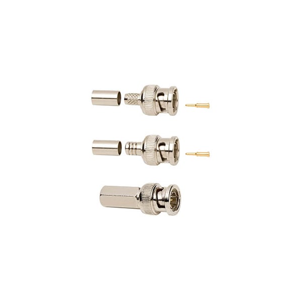 O crimp 50 Ohm BNC connector with gold plated contacts for RG/U 58 coax cable.