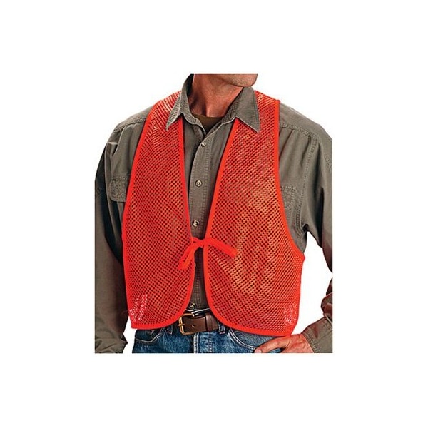 One Size Fits Most, Blaze Orange Mesh Safety Vest, Quiet 100 Mesh Polyester, Front Tie Closure Machine Washable