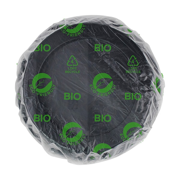 Protective wrapped Lids produced with recycled, bio-enhanced resins, degradable in active landfills. Recyclable. Individually wrapped in LDPE 4 Recyclable