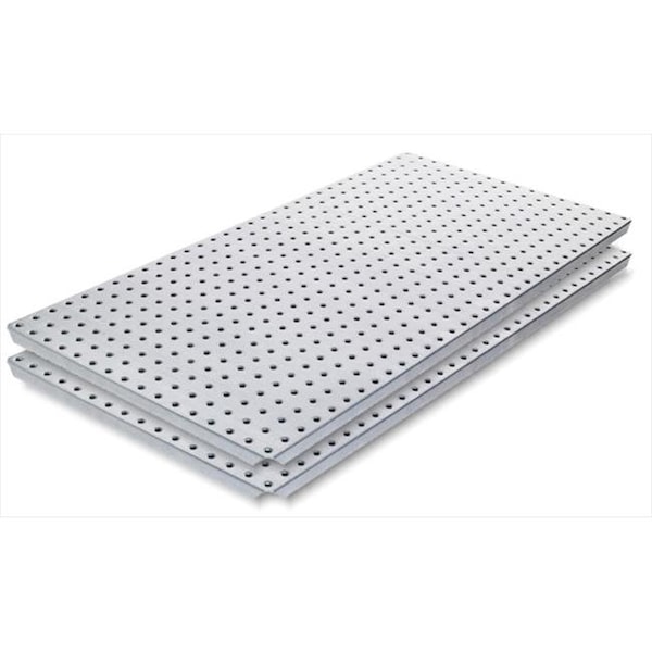 Stainless pegboard includes two 16" x 32" 300-Series panels and matching stainless mounting screws to mount straight out of the box (no furring strips needed).