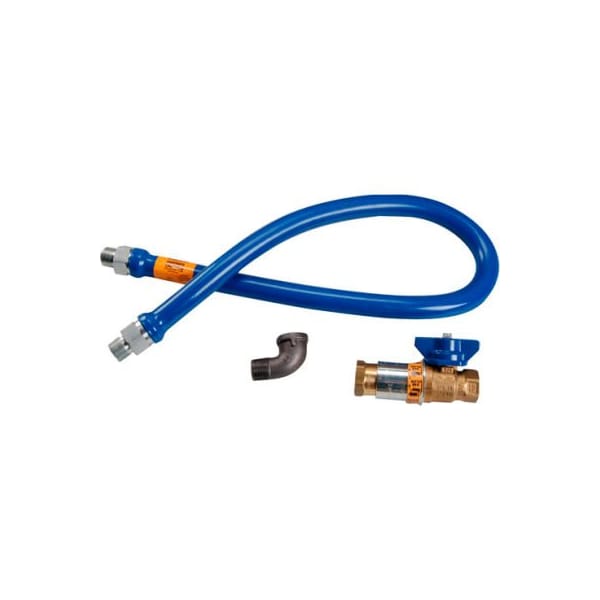 length: 48" size: 3/4" npt fittings coating: plastic gas hose includes: heavy duty gas hose, safety quik disconnect | street elbow