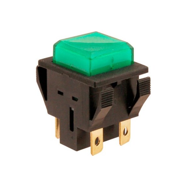 color: black | green indicator light material: plastic voltage: 125/250 v ac amp: 10 terminals: 1/4" tab terminals switch action: off/momentary on switch type: dpst