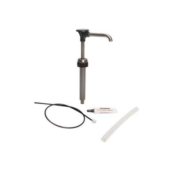 material: stainless steel includes: suction tube,cleaning brush,lubricant, gauging collars type: dispenses syrups, liquids | pump cap screws onto any 28mm opening of bottle note: adjustable 1/4 oz to 1 oz increments nsf certified: y