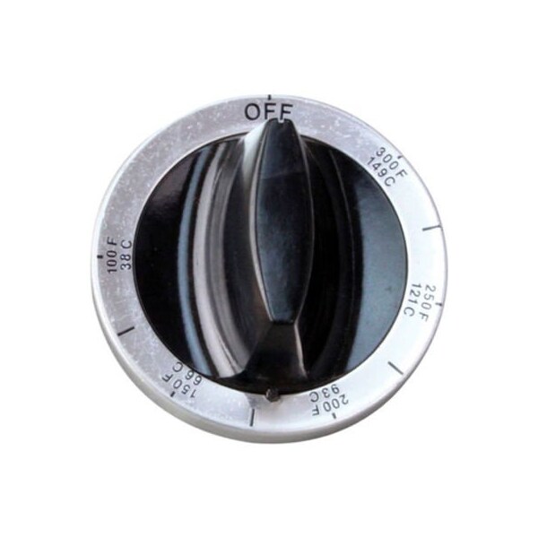 knob, 100-300f knob also has celsius printing on it (38-149c) 3/16" d-stem flat down black with metal overlay delfield