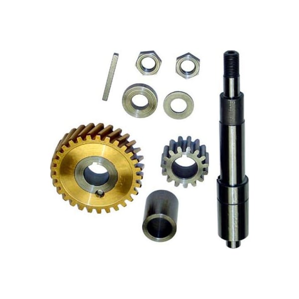 worm wheel shaft service kit, includes: 1ea # 26-2852 worm wheel gear, 1ea # 26-2853 shaft, 1ea # 26-2850 15 tooth gear, 1ea # 26-2851 key, 2ea # 26-2842 3/8" hex nut, 1ea spacer 1.137 x .875 od,' 1ea bushing .420" id x .870" od x .020" thick, has shoulder, 1ea washer .40" id x .750" od x .063" thick hobart mixer a120, a200