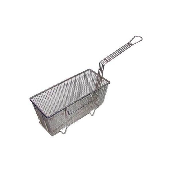 twin fryer basket, 12-1/8"l x 6-3/8"w x 5-3/8"d, hook location left, fry basket, 1 1/4" feet. hobart fryer ak20, ck20, ck201, dk20, hk8 prince castle fryer