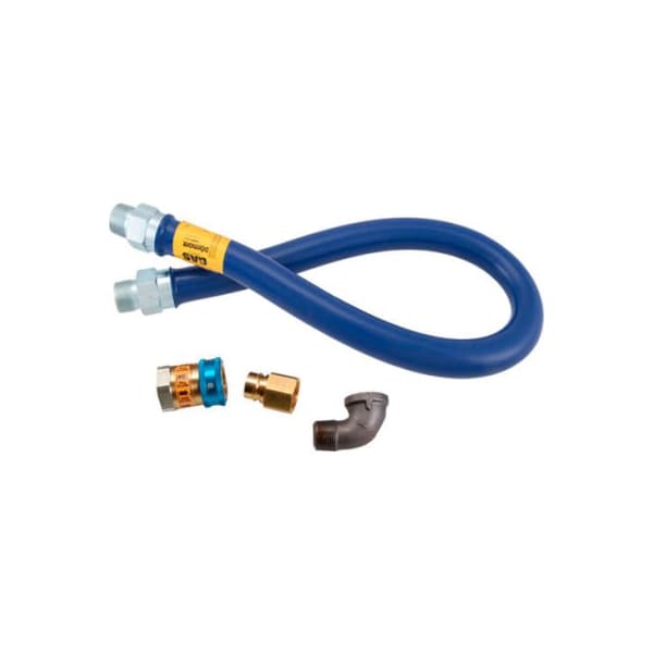dormont blue plastic coated gas hose w/male swivel ends. polytec coated stainless steel braided hose, 1" mpt x 48" long kit includes 1" mpt coated hose, 1" fpt quick disconnect, 1 street elbows 1" mpt/fpt